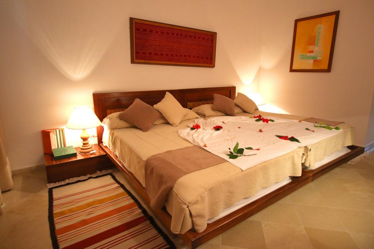 Hotel razpolaga s 380 udobno opremljenimi sobami in bungalovi. So klimatizirane (v nadzoru hotela) in imajo kopalnico (tuš ali kad, wc, sušilec za lase), telefon,sat TV, mini bar, grelnik vode za kavo ali čaj, sef, balkon ali teraso.